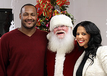 December 20, 2012—New Orleans, LA—New Orleans Saints star Will Smith and his wife, Racquel, held their annual holiday event Tuesday, December 18 as part of the Where There’s A Will There’s A Way Foundation’s efforts in partnership with Kingsley House. Twenty families pre-selected from the Kingsley House program attended the evening’s festivities, which included a catered dinner, a tour of the Saints facility, gifts selected personally by Will and Racquel, and a visit from Santa.